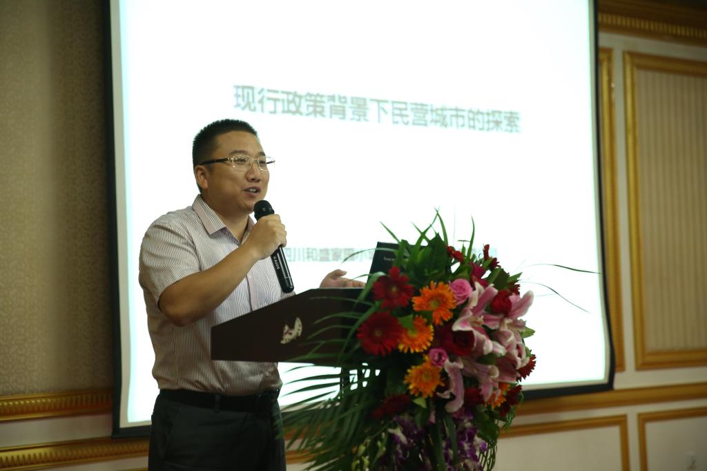 四川和盛家园投资集团董事长胡林介绍了民营企业在成都郊区农村的实践探索。胡林指出,民营城市与政府主导模式的不同,一是传统模式是国有资金投入,二是政府建城的收入主要来源于国有土地出让收入,程序复杂,周期长、成本高、效率低,三是民营企业可以与农民通过谈判的方式根据市场发展的条件和预期来共同决策开发的具体过程。