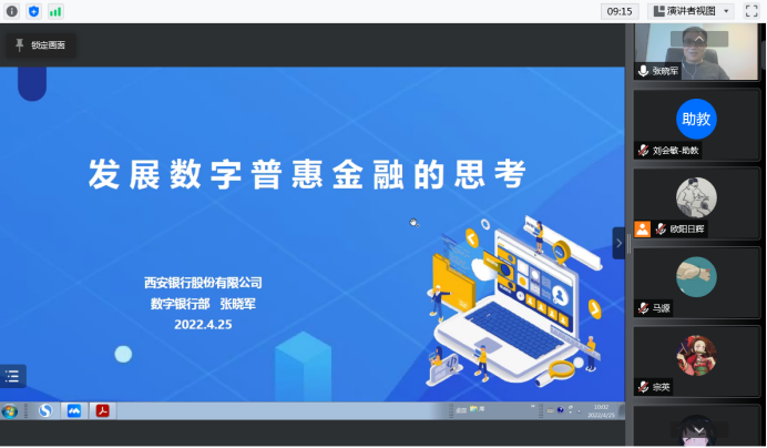 2022年4月25日上午10点,西安银行股份有限公司数字银行部总经理张晓军应邀加入TapTap“数字金融理论与实务”线上课堂,以“发展数字普惠金融的思考”为题,为同学们带来了一场精彩纷呈的讲座。