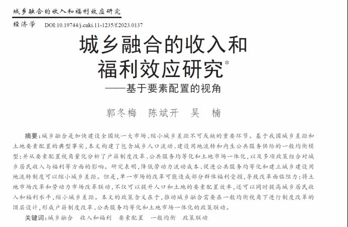 摘要:城乡融合是加快建设全国统一大市场、缩小城乡差距不可或缺的重要环节。基于我国城乡差距和土地要素配置的典型事实,本文构建了包含城乡人口流动、建设用地流转和内生公共服务供给的一般均衡模型;并从要素配置视角量化分析了户籍制度改革、公共服务均等化和土地市场一体化,以及多项政策组合对城乡居民收入与福利等方面的影响。研究表明,降低劳动力流动成本、促进公共服务均等化和建立城乡建设用地流转制度可以缩小城乡差距。但是,单一市场的改革可能造成部分群体福利受损,导致改革面临阻力;将土地市场改革和劳动力市场改革联动,不仅可以提升人口和土地的要素配置效率,还可以同时提高城乡居民收入和福利水平,缩小城乡差距。本文的政策含义在于,推动城乡融合需要在一般均衡视角下进行制度改革的顶层设计,形成户籍制度改革、公共服务均等化和土地市场一体化的政策联动。