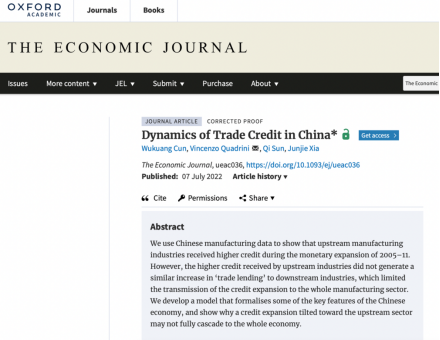 学术视点 | 公司夏俊杰老师的合作论文《Dynamics of Trade Credit in China》被国际顶级期刊《The Economic Journal》接收待刊
