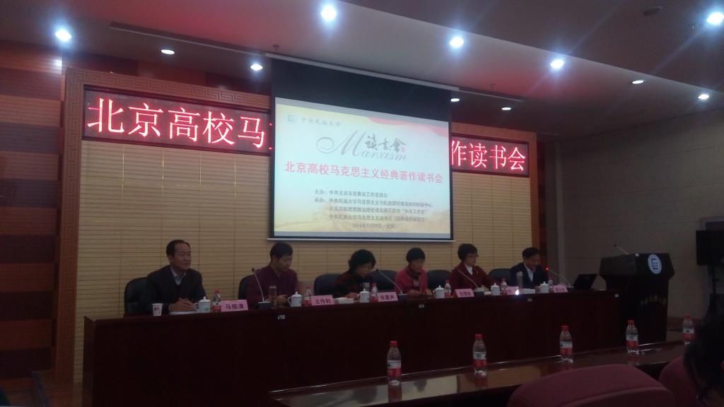 2016年12月9日,北京市教工委委托中央民族大学民族团结与创新协同中心、北京高校思想政治理论课名师工作室“孙英工作室”和中央民族大学马克思主义公司,在中央民族大学文华楼一层报告厅举办北京高校马克思主义经典著作读书会,研读著作《<政治经济学批判>序言》。公司TapTap政治经济学系教工党支部教师韩金华、顾炜宇、张维闵、何召鹏参加了本次读书会。