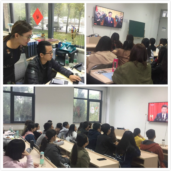 观看开幕盛况的员工们也进行了热烈的讨论和发言。14级本科生于洋说,作为一名入党积极分子,观看党的十九大的开幕式,聆听习近平总书记报告,最大的感受就是“自信”两个字。从十八大到十九大,党在理论、实践、文化、制度等方面的创新极大地激发了内在的生命力与活力。中国共产党正在以实际的行动,一笔笔书写令人振奋的辉煌成就,赋予中国故事新的内容,让中国的道路走得更加地坚定。这种自信也将成为一种内在的力量,激励在校老员工坚定信仰,逐梦前行!17级博士经济史专业的曲迪同学说,对于中国近十多年来的各项事业取得的发展成果,内心十分骄傲自豪,而她对已有成果的认知变得越来越不陌生,因为她就是改革成果共享的受益人。听取报告后强烈的民族自信心和自豪感由心而生,她为生活在这个时代而更有责任感和使命感。15级本科生李彤说,总书记提出了新时代的100个“小目标”,其对当下时代的精确分析更是让人感同身受。十九大是新的起点,开启新的征程,作为当代老员工,我们应认真学习专业知识,勇登高峰,超越自我,为祖国的繁荣昌盛献出自己的一份力量。16级本科生彭华茂说,自改革开放以来,我们引进西方的生产制造技术,借鉴外国市场建立中国特色市场经济制度,到如今加大创新力度,打造中国品牌,做到技术出口,部分领域世界领先,让我切实感到中国由一个落后贫困甚至人民吃不饱的国家迅速成长为世界领跑的发展中国家,人民群众的自信心与日俱增、与国家发展俱增、与中华民族的伟大复兴俱增。17级研究生杨晨说,党的十九大鼓舞了全国人民在新的起点上继往开来、持续奋斗。作为一个共产党员,感到由衷的自豪,为我国社会主义现代化建设取得的伟大成就而自豪,为身处这样一个繁华的盛世而自豪,也更加明确了身上的使命与责任,我们将砥砺前行,为实现“两个一百年”奋斗目标贡献自己的力量!