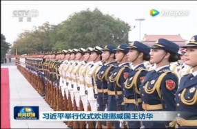 人民大会堂东门外广场,执行总统级外事任务,出现在新闻联播中,唐烁为右二