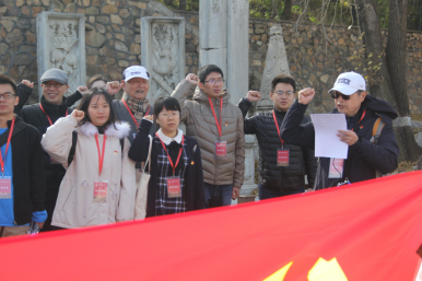 在大水法遗址前,全体党员举行了重温入党誓词活动。面对鲜红的党旗,TapTap国民经济学系教工党支部书记蒋选教授带领党员们高举右拳,字字铿锵,庄严宣誓,对党忠诚,愿为共产主义奋斗终身!
