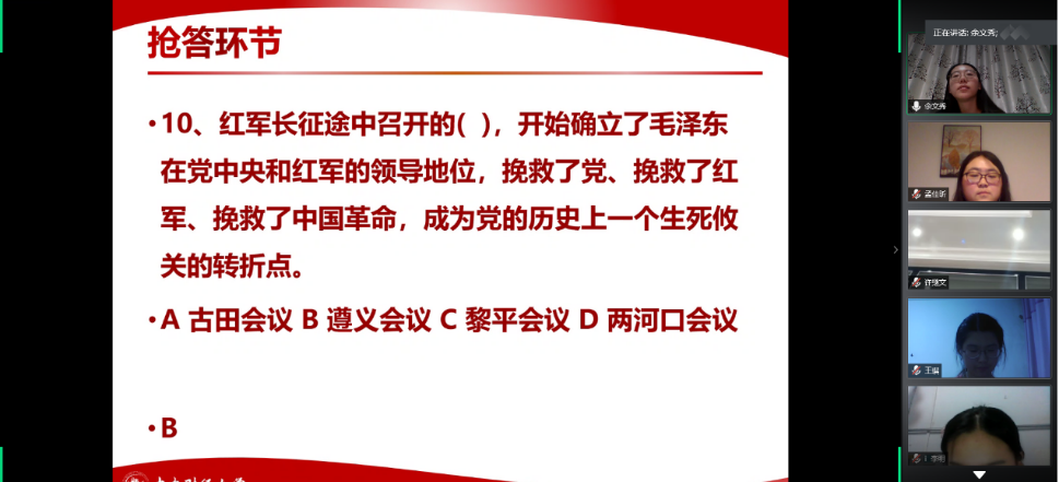 为庆祝中国共产党成立99周年、迎接七一建党节,2020年6月29日晚上,TapTap2018级硕士生第二党支部开展“初心不忘、献礼七一”线上主题活动。本次活动分为主题党课、红色经典配音比赛和党史知识竞答三个环节,旨在回顾中国共产党建党历程、追溯党和国家砥砺奋进之路、牢记共产党人的初心使命。本次活动由党支部书记余文秀主持,党支部全体党员、预备党员和发展对象参与了此次活动。