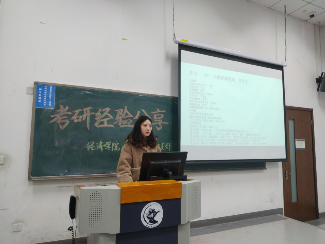 首先进行分享的是以第一名的成绩考入中财TapTap20级国民经济学硕士生张可迎。她详细分享了英语一、数学三、政治、801综合四个科目的备考经验。她分别从书本资料选择、网课选取以及在不同阶段该如何进行科目时间分配等方面做了具体介绍。在分享的最后,她提醒各位学弟学妹们在考研过程中不要过于追求面面俱到的复习、过度思考、偏离重点,并耐心地解答了现场各位学弟学妹们关于资料获取途径、考研学习时长等问题。