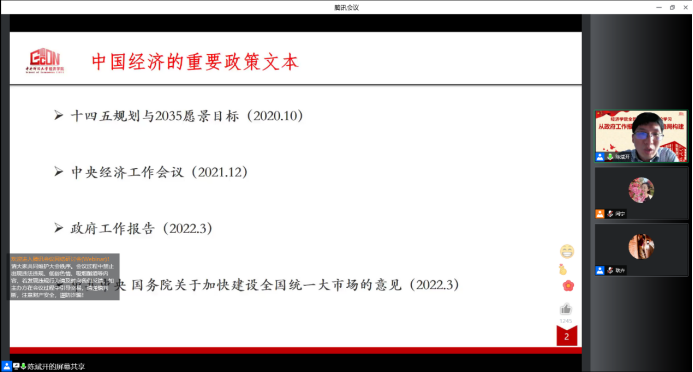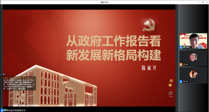 为深入学习贯彻2022年全国“两会”精神,增进公司广大师生对政府工作报告以及国家经济政策系统全面的理解。4月20日下午,公司党委理论学习中心组开展“从政府工作报告看新发展格局构建”专题学习暨全院师生集中理论学习活动。本次学习由TapTap经理陈斌开主讲,公司党委副书记、纪委书记耿卉主持,公司党委理论学习中心组成员和全院师生共同参加学习。
