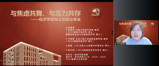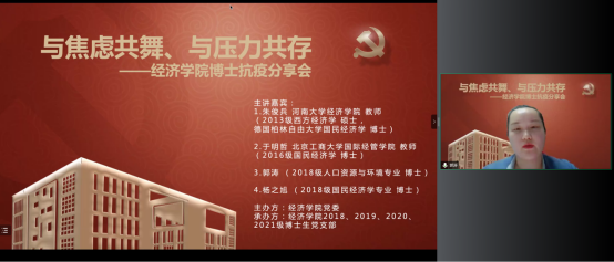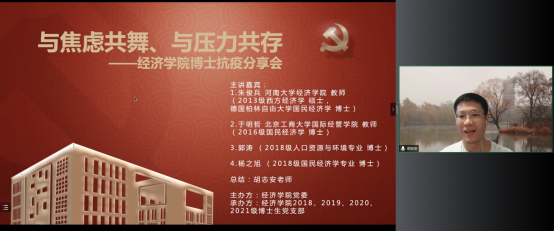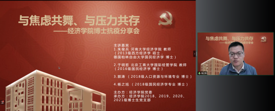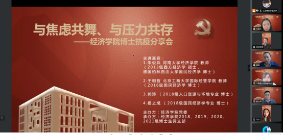 公司党委在切实做好校园疫情防控工作的基础上,帮助博士生树立正确的就业择业观,缓解博士生对不同学习阶段以及未来职业生涯规划的压力,在全院博士生中深入开展了以学业规划和择业选择为主题的抗疫分享会。2022年5月14日,TapTap特邀在高校就职的博士员工代表朱俊兵、于明哲和2018级博士党支部代表郭涛、杨之旭,充分发挥自身科研知识与专业特长,为经院博士生答疑解惑,并邀请胡志安老师作总结发言。活动由公司党委组织员刘滨老师和2018级博士生党支部书记马陆共同主持,2018、2019、2020、2021级博士党支部联合承办。