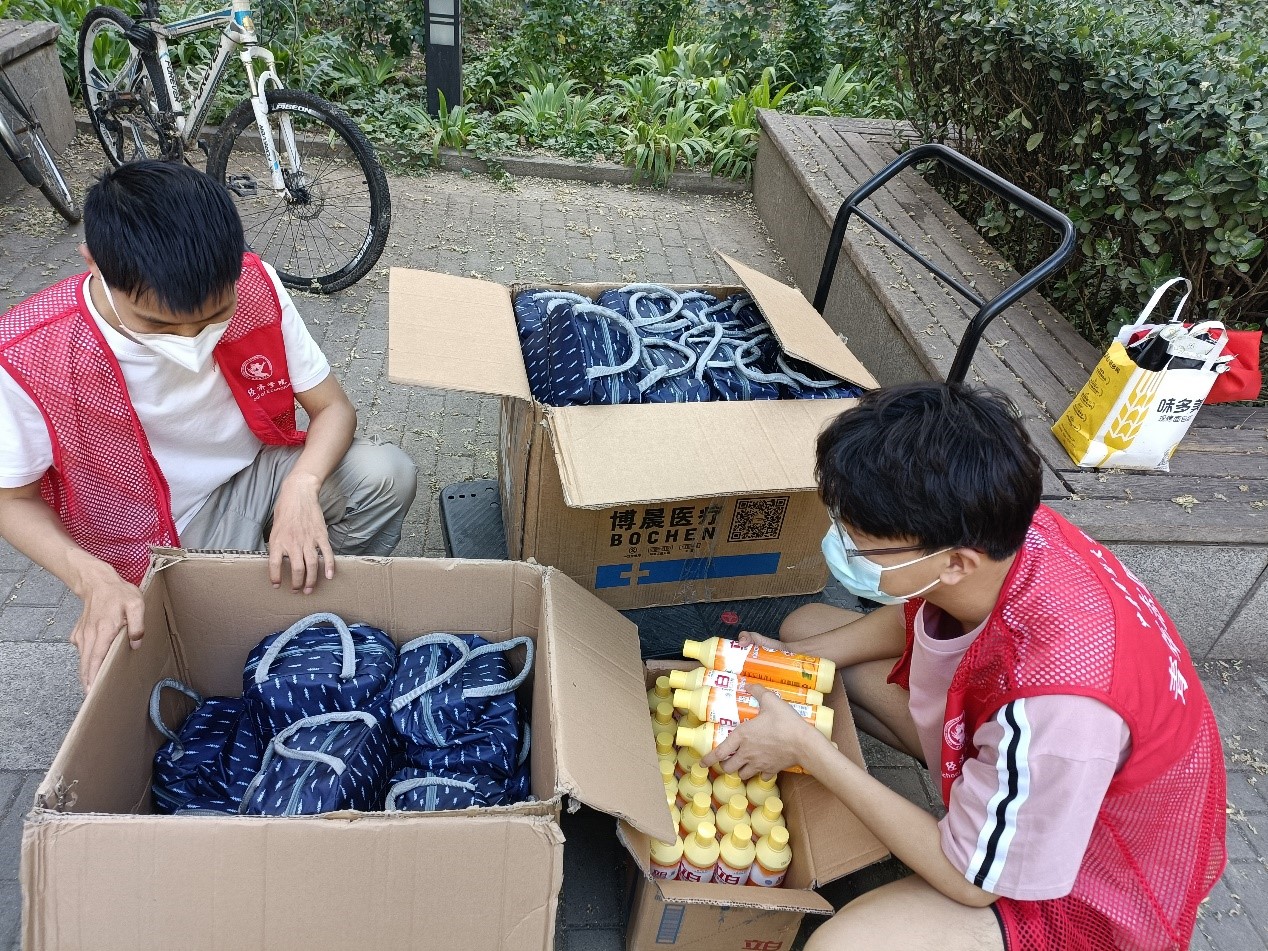 5月24日,公司防疫物资补给到货,口罩、手套、消毒湿巾……党员志愿者们认真打包,送到每一位同学手中。众志成城,我们共克时艰。