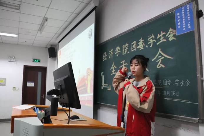 接下来员工会主席寇静恬分享了自己工作学习时的经验。首先,她建议同学们列出一个待办事项清单,以提高自己的工作效率以及工作热情。接下来她给同学们介绍了心理建设的方法,希望大家能够遇事沉着冷静,以平常心看待生活中的事情。最后,她祝愿新成员们都能肩上有风,心中有梦,在团委、员工会大家庭中茁壮成长。