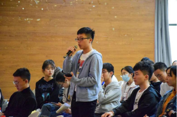 主持人张皓天与崔淙源、张瑞祺、胡欣采取“焦点访谈”的形式进行了现场答疑,从同学们关心的综测出处及其重要性到员工工作等问题,从如何组织进行老员工双创活动到假期实践活动如何开展,一场别开生面的优秀员工干部交流会不仅拉近了新团员与员工干部的距离,消弭陌生感,还帮助了新团员在团校活动前进路上,拨云见日,柳暗花明。