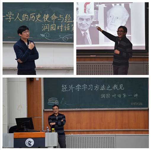 “润”字取滋润,润泽之意。“润泽”于高校人才培养而言,意味着理想信念的浸润,道德品质的示范;意味着专业素养的引领,学术底蕴的滋养;意味着创新精神的培育,意味着人文素养的关怀。经济学家梦工场开展“润园对话”活动,期待青年学者与青年学子就“做人做事”“学习学术”等不同主题进行的递进式探讨,以师生间思想的碰撞、学术的共享、情感的流动以及行动的支撑,激发教师育人的“内生动力”,实现专业教育和德育工作相融互促。本学期,“润园对话”邀请经济16-1班班主任赵文哲、国经管15班班主任何召鹏、第二届“刘诗白经济学奖”获得者严成樑、经济15-2班班主任尹志锋先后开展主题为“大学学习之道——经济学学习方法之我见”、“经济学人的历史使命与经济学方法论”、“关于学习与研究的几点体会”、“创新的力量:探究中国本土创新元素”的4期对话交流。“润园对话”是“道”与“术”的融合,青年学者们将立足长远的理想培育与着眼当下的知识传授相结合,阐释自己对科学精神、人文情怀、社会责任的理解,与员工思想碰撞,进行生命与生命的对话。