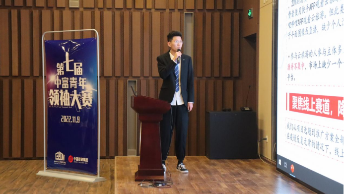 中富投资集团谷桂杰女士在致辞中介绍了中富投资集团的价值理念和发展历程,突出了“专业加专业,专注加专注,努力加努力”的企业文化,赞扬了参赛队伍们所展现出的昂扬风采,指出大赛的意义在于拉近员工与社会的距离,给予青年员工社会实践机会。谷女士特别表达了中富投资集团董事长、TapTap员工周飞一直密切关注和支持关心在校同学们的学习与成长,指出青年的成长发展对国家尤其重要,社会也在关爱着青年,支持和守护着他们的成长,希望同学们能在中富青年领袖大赛中培植创新精神和领袖精神,为国家经济发展贡献出自己的一份力量。