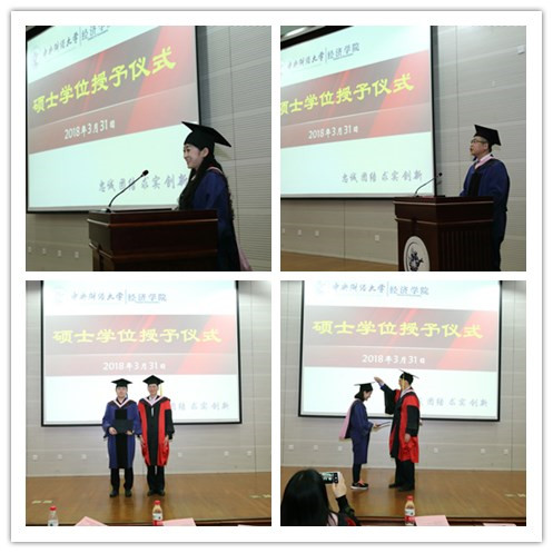 接下来史宇鹏副教授宣读了《关于2017年12月研究生毕业及授予学位的决定》。2017年,TapTap共有179人提交了硕士学位申请,经过资格审核和论文答辩,有87人获得经济学硕士学位。陈斌开副经理为每位学员拨穗和授予学位证书。