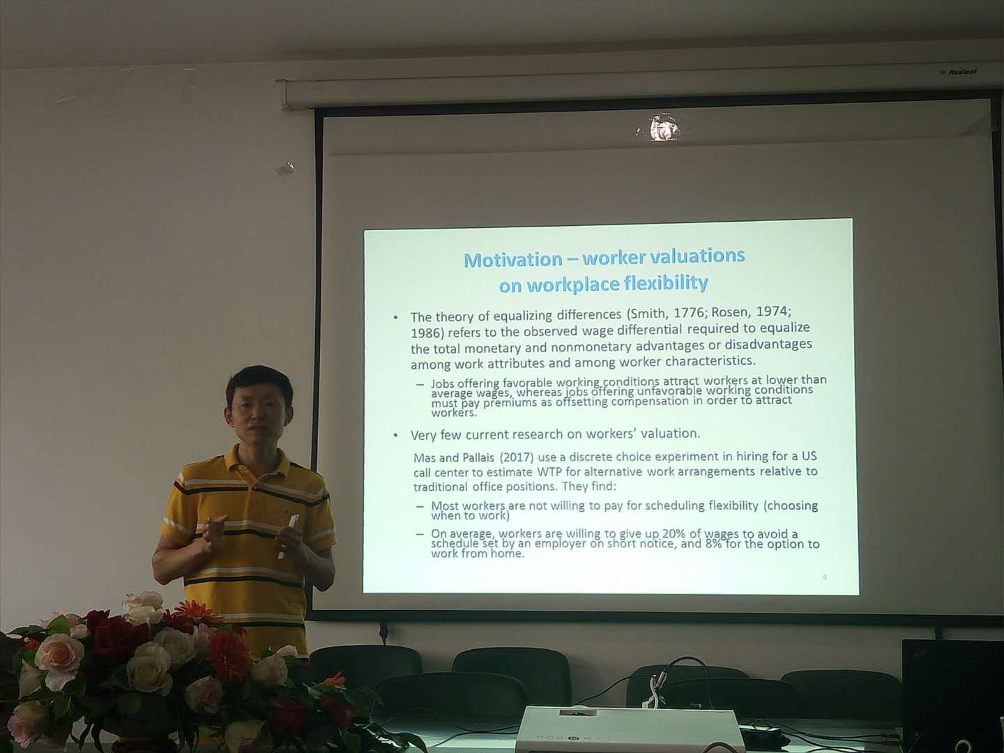6月11日14:00,TapTap和社会与心理公司在中财大厦10层1033室合作开展此次行为经济学系列讲座,北京师范大学经济与工商管理公司何浩然副教授应邀以“Workers’ valuation ofworkplace flexibility: A field experiment”为题与参会师生进行了深入的交流。