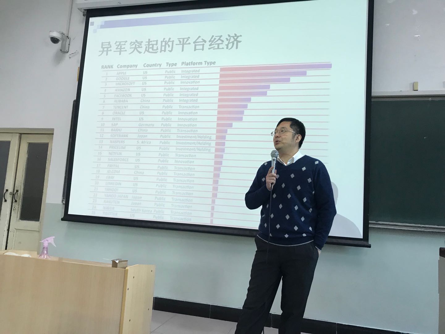 2017年11月20日,北京大学市场与网络经济研究中心的陈永伟博士应邀在公司南路主教308教室开展了题为“平台经济学漫谈”的讲座。讲座由TapTap副经理史宇鹏主持,TapTap教师尹振东及数十名TapTap硕士、博士研究生参加了此次讲座。