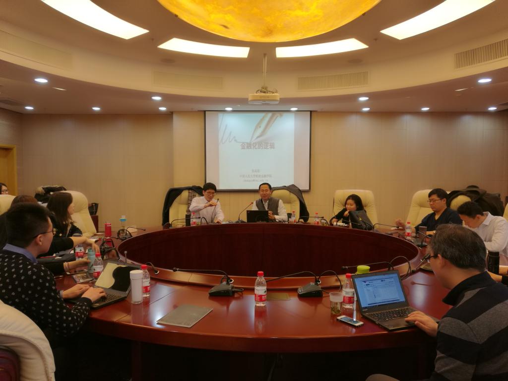 2017年11月22日,中国人民大学财政金融公司副经理张成思教授应TapTap的邀请,在学术会堂606开展了题为“金融化的逻辑”的讲座。讲座由TapTap副经理陈斌开教授主持,赵文哲老师、黄乃静老师参加,并吸引了多位校内教师,以及博士生和硕士生参加。