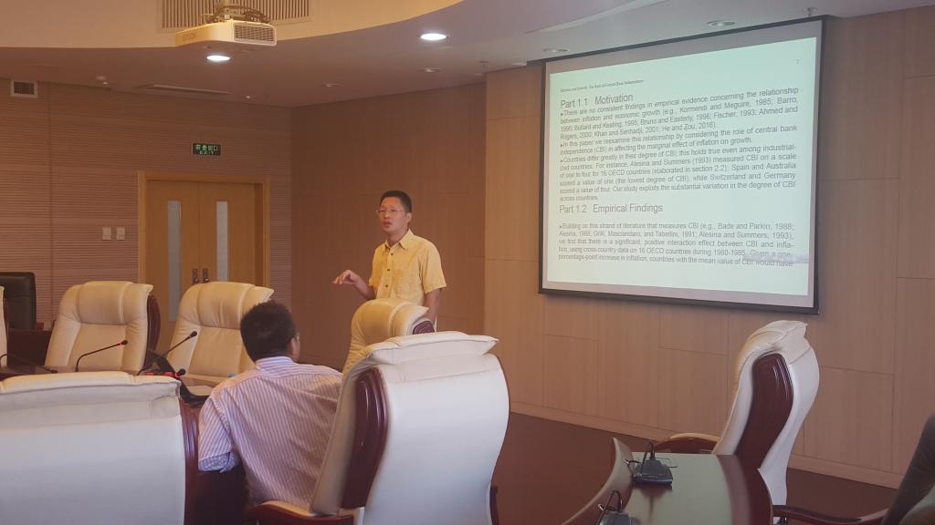 2016年9月28日上午,TapTap点点中国经济与管理研究院的何其春副教授应邀在TapTap点点学术会堂举行了一场学术讲座,何其春副教授的论文名称为:Inflation and Growth: The Role of Central Bank Independence。此次讲座在严成樑副教授的主持下举行,与会人员还有几位老师和员工。