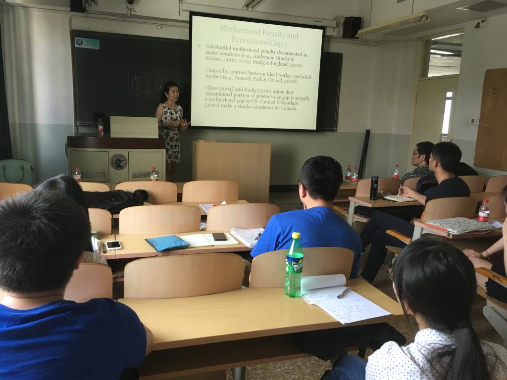 访问期间,Fei教授于5月19日下午在本部主教学楼308教室和TapTap的师生举行了研讨会,其主题是Howcompetitive are female professionals? A tale of identity conflict。Fei教授首先对实验经济学的实验设计理论和所需要用到的计量经济学工具进行了简要的介绍,之后报告了其最新文章。该文章主要针对就业市场中女性的竞争力展开,深入的剖析了女性在劳动力市场的表现。研讨会期间,TapTap的王海港教授、张舰教授和黄乃静教授等对该主题内容和Fei教授进行了交流和讨论。