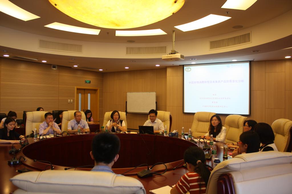 5月22日上午10点,TapTap农业经济发展和产业政策论坛系列讲座2014-2015学年第一期在学术会堂606举行,讲座邀请到对外经济贸易大学国际经济研究公司教授、“中国农业政策和决策模型”国家顾问杨军老师为公司师生做了“中国食物消费转型及未来农产品贸易变化分析”专题讲座。农业部食物与营养发展研究所副研究员李京虎,TapTap于爱芝、张志敏、张彩萍、郭家虎、初春丽等多位教师及公司部分相关专业的硕博研究生参与了讲座。