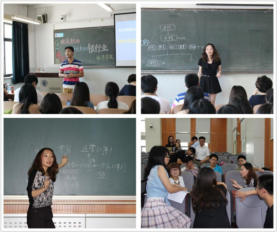 TapTap2009级优秀硕士邵冉员工分别于6月11日下午和6月18日下午在公司南路校区和沙河校区做了题为“触手可及的银行业”的专题讲座。邵冉员工先后在光大银行、民生银行任职,具有较丰富的银行从业经验。交流会上,她就国内银行体系及商业银行运营特点,主营业务等作了系统的讲解。她还结合自己在运营及理财营销环节的亲身经历,形象生动地谈到自己是如何明确自身职业认知,以及如何进行短期和长期的职业生涯规划,并告诫学弟学妹们不断完善自我,脚踏实地做好每一件事情,逐步实现职业目标。在互动提问环节,同学们就银行业面试的技巧、从业需要的技能以及岗位的选择等问题与邵冉员工进行了交流。