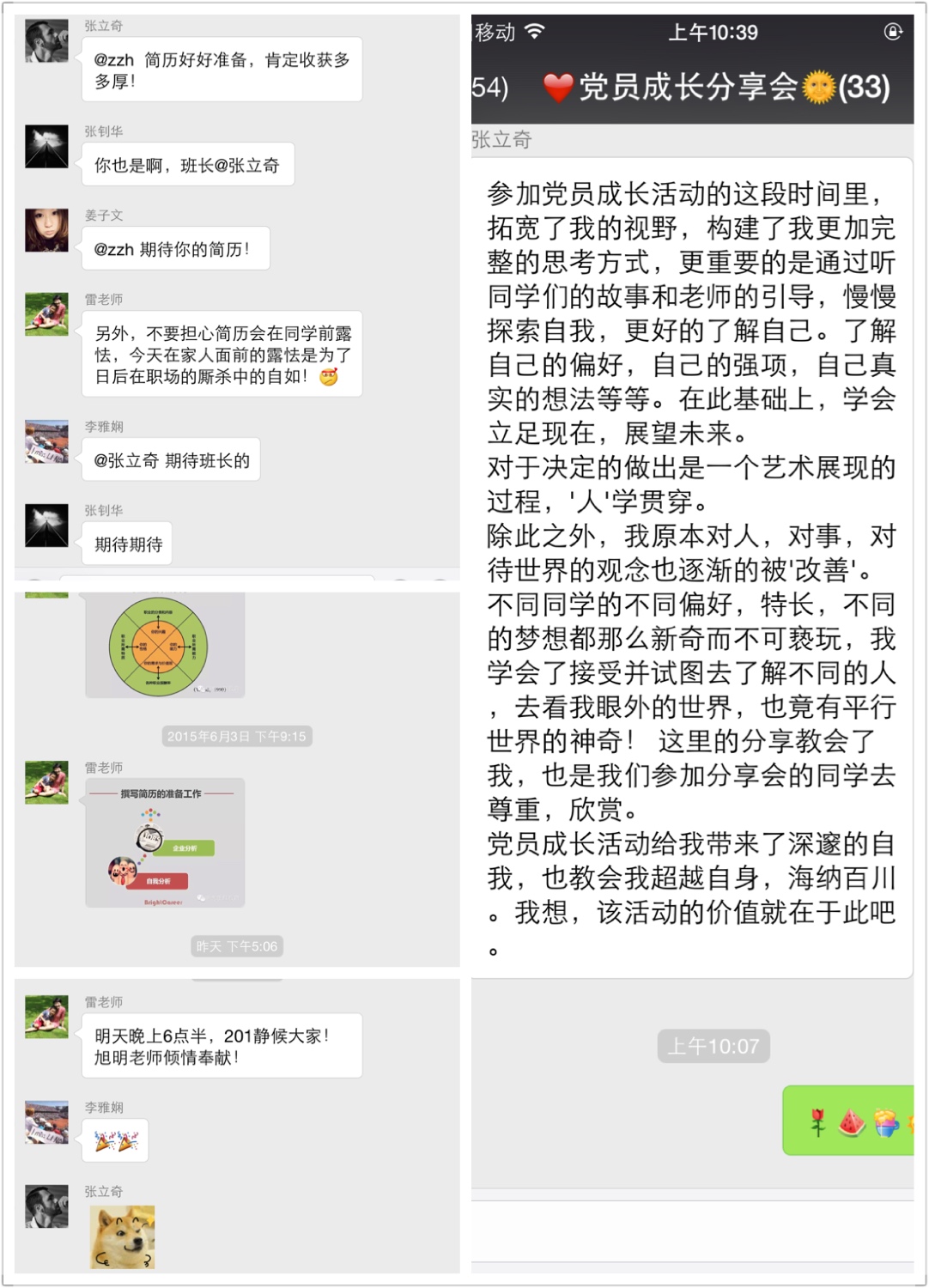 2015年3月25日,在第一季“党员成长分享会”已经实现员工互助成长、建立亲密师生关系的基础上,以助力员工党员成长和寻找党员“幸福感”作为两条主线的第二季“党员成长分享会”拉开帷幕。公司党总支副书记雷洪峰与党务干事韩旭明、谢文娟、梁延东四位老师共同组建“学业发展与生涯规划”教学团队,将生涯规划的课程体系纳入到党员教育活动中。