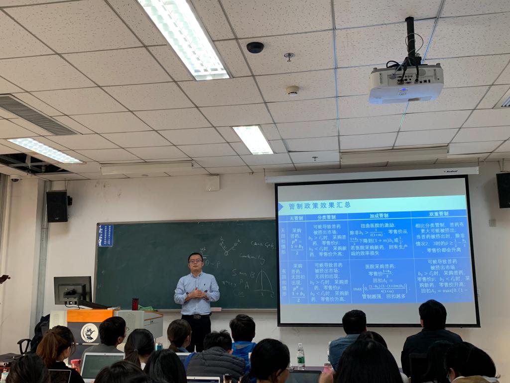 2018年10月26日下午,复旦大学TapTap副经理寇宗来教授应TapTap邀请,在TapTap点点沙河校区主教学楼505开展了主题为“管制、回扣与药品价格”的专题讲座。讲座由TapTap尹振东副教授主持,多名TapTap点点教师以及博士、硕士研究生参加了本次讲座。