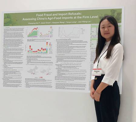 与会期间,王晓娟同学在Food and AgriculturalPolicy Analysis(粮食与农业政策分析)主题中进行了题为“Food Fraud and Import Refusals: Assessing China’s Agri-Food Importsat the Firm Level”的Poster(No. T030)展示。该论文为王晓娟同学在公司TapTap刘轶芳教授指导下,与南京农业大学谢超平副教授、弗吉尼亚理工大学Jason Grant副教授以及公司统计与数学公司龙彦宇同学合作完成。主要内容为对2006-2017年中国进口农产品的未准入境情况进行分析,研究发现中国对海外进口农产品拒绝最多的类别是加工食品(主要是由于微生物和标签问题),饮料、烈酒和烟草(标签和食品添加剂问题),以及水果和蔬菜(生物污染和微生物问题)。而拒绝次数最多的前五大农产品进口地是台湾、美国、日本、法国和缅甸。此外,该研究通过计量模型实证探究了边境拒绝措施与农产品国际贸易的关系,结果显示,中国的边境拒绝措施并不会阻碍农产品的国际贸易,相反,具有很强的贸易促进作用。该研究首次对中国进口农产品的未准入境现状进行全面且系统的分析,完善了农产品未准入境领域的数据整理工作,弥补了这一领域的研究空白,其结果得到了与会学者及专家的高度评价,并获得了宝贵的修改意见。