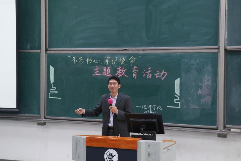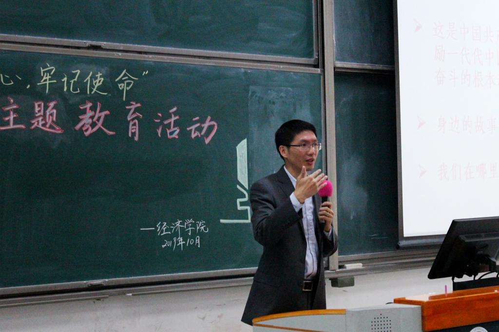 随后,冬梅书记又以自己的真实经历与感受将同学们带到爱党爱国的学习氛围中。她从经济学的角度讲述初心的重要性。效用函数的度量、成本和收益的计算都只看到了当下的经济考量,却没有放入初心、情怀和时间这些重要变量。我们学习经济,计算收益应该是动态的,要有长远思维,不要因为眼下的得失而太过精致。除此之外,冬梅书记还指出,解决问题不能在问题里面,而要站在问题之上思考问题,确立高站位,这一思维在同学们的学习和生活中,应一以贯之。