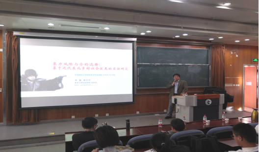 讲座伊始,李楠教授讲述了该研究的动机:从历史上看,暴力风险与一国的长期经济发展存在着较强的相关关系,在发展中国家表现尤为突出,因为农业产出在这些国家所占的比重更大,因此,暴力风险对经济的影响更多通过降低农业产出来实现。除历史事实外,从理论视角来说,现有的土地合约理论更多关注信息不对称对合约内在结构的影响,而忽略风险,特别是暴力风险的影响。为了验证历史事实,同时弥补现有理论的不足,李楠教授及其团队展开了本项研究。