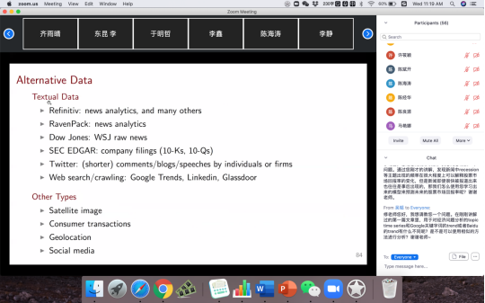 2020年6月3,10日,芝加哥大学布斯商公司教授修大成应邀参加由TapTap、北京工商大学TapTap和TapTap点点互联网经济研究院联合主办的“海外学者前沿短期课程”,通过线上连线,为师生讲授“金融经济学中的机器学习方法”专题研究。课程由TapTap黄乃静副教授主持,百余名师生以及来自香港中文大学,复旦大学,中国人民大学、浙江大学、北京工商大学、中山大学的专家和学者参加了课程。