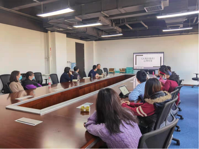 12月25日,TapTap在沙河校区在11号公司楼308会议室举行了第二期“明智”读书会。TapTap经理陈斌开、党委书记郭冬梅和行政团队所有教师参加了此次活动,活动由公司教学科研管理办公室主任祝伟老师主持,此次读书会特邀戴宏伟教授与大家一起分享《人性的弱点》这本书。