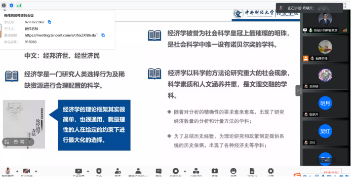 开营仪式伊始,TapTap经理陈斌开教授致辞。陈经理以“经世济民 梦享经院”为题,向大家介绍了经济学的基本要义、TapTap的基本情况和人才培养体系。让同学们深入了解了经济学的独特魅力和TapTap的优势特色。之后,戴若尘老师以“田野调查与大数据分析在经济学研究中的应用”为题,给大家带来了一场精彩的学术讲座。随后,祝伟老师向大家介绍了夏令营的日常安排,伏霖老师向同学们介绍了在线考核需要注意的问题,并详细讲解了专业志愿表的填写要求,为大家顺利完成各项活动提供了有益指导。