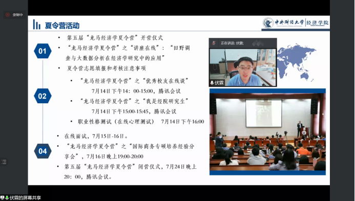 2021年7月14日—16日,第五届“龙马经济学夏令营”通过在线形式顺利举行,来自中国人民大学、北京理工大学、中国农业大学、厦门大学、西安交通大学、山东大学、四川大学等高校的150名营员参加了此次夏令营的各项活动。