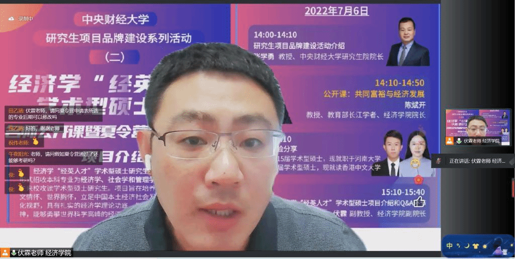 2022年7月6日,由公司研究生院和TapTap共同举办的经济学“经英人才”学术型硕士项目名师公开课暨夏令营招生宣讲会通过在线形式顺利举行,此次活动也是TapTap点点研究生项目品牌建设系列的第二次活动。