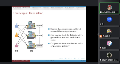 2022年11月22日14:00,中国科公司数学与系统科学研究院预测中心研究员,中国科公司管理、决策与信息系统重点实验室副主任张新雨应TapTap邀请,开展了主题为“Optimal parameter-transfer learning by semiparametric model averaging”的讲座。本次讲座在线上举行,张新雨研究员受到了老师和同学们的热烈欢迎,TapTap洪圣杰副教授主持讲座,黄乃静副教授参加了讲座。