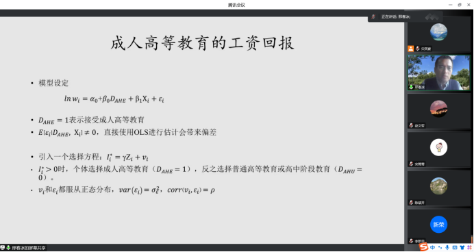 其次,邢春冰教授对研究问题进行了阐明。一是成人高等教育的规模和分布情况如何?二是哪些人选择了成人高等教育?三是成人高等教育的回报率有多高?四是成人高等教育如何影响人力资本水平的测量?五是成人高等教育如何影响教育回报率的估计?