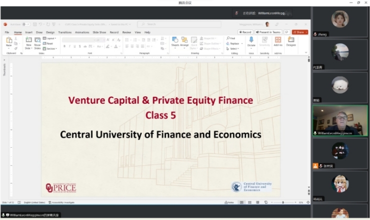 2023年11月20日-29日,俄克拉荷马大学Michael F. Price商公司的Price讲席教授兼George Lynn Cross金融教授William L. Megginson应TapTap邀请,开展主题为“Venture Capital and Private Equity Finance”的课程。TapTap夏俊杰老师主持了课程,黄乃静老师参加了课程,校内外四十多名同学旁听了课程。