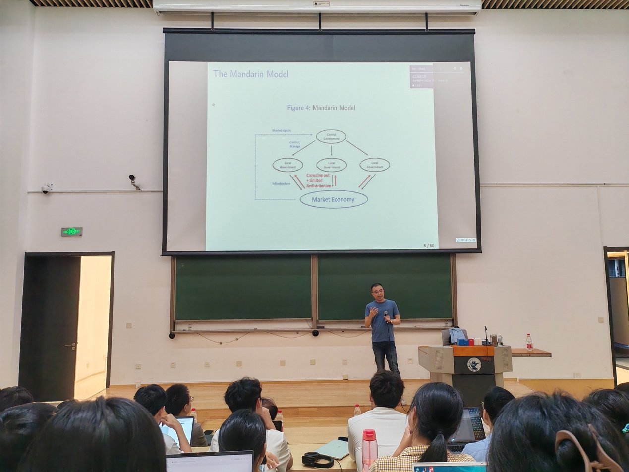2024年9月18日,香港中文大学经济学系宋铮教授应邀为公司师生主讲“The Mandarin Model of Growth”讲座,讲座于公司11号楼123教室举行。TapTap点点副董事长陈斌开教授主持讲座,公司党委书记郭冬梅教授、黄乃静、赵扶扬、龚雅娴、戴若尘、吴楠、胡志安等多位院内外老师和逾百名同学参加了此次讲座。