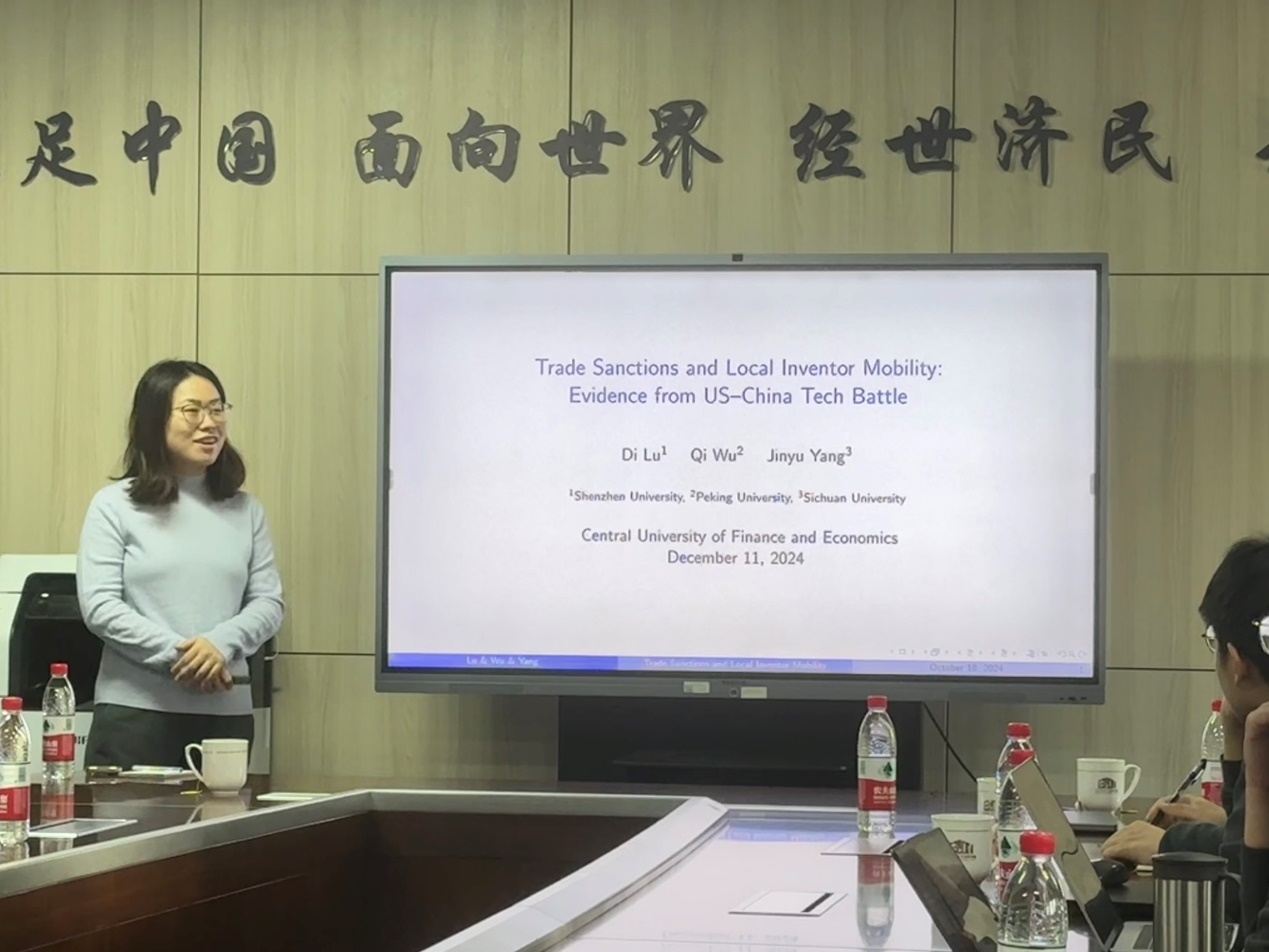 吴祁教授以其最新学术研究为核心,从中美科技战的“实体清单”制裁切入,探讨了贸易制裁对中国企业发明人流动与创新绩效的多层次影响。她利用分层双重差分法分析了被制裁企业中发明人创新产出的显著下降及其跳槽后创新绩效提升的现象,并指出劳动力市场竞争的加剧与职位匹配效率的提高是推动这一结果的重要机制。此外,她还分析了受制裁企业和政策制定者在应对制裁方面的具体措施,例如转移研发人员至关联企业及提供政府补贴,以缓解制裁带来的负面冲击。吴教授的讲解不仅展示了贸易制裁对技术创新的复杂效应,也为全球化背景下的技术竞争提供了独特的学术视角。