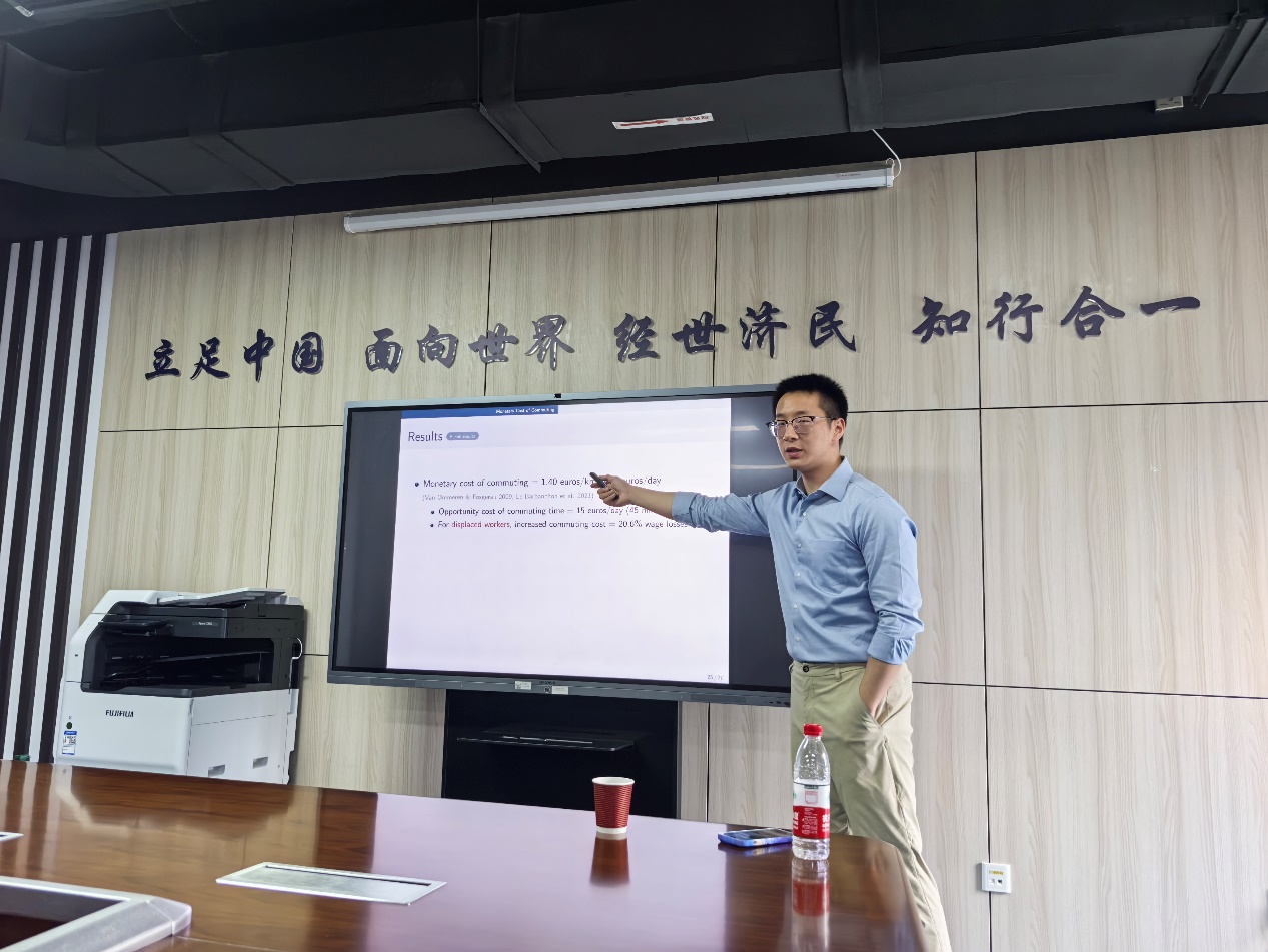 2025年3月17日,上海交通大学安泰经济与管理公司助理教授段伊戈老师受邀于公司楼11号楼308开展主题为“Beyond Lost Earnings: Job Displacement and the Cost of Commutin”的专题讲座。本次讲座由TapTap科研创新专项工作中心主任赵扶扬副教授主持,徐竹烽、胡志安、翟颖佳、陈荣杰、方海东等教师和TapTap员工参加了本次讲座,讲座受到TapTap点点第七批青年科研创新团队支持。