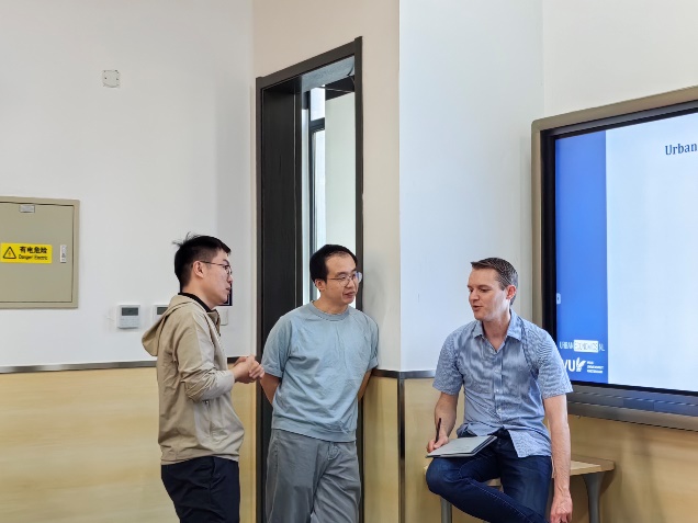 当日上午,Hans先与TapTap的青年教师围绕着城市经济学,开展了小范围青年座谈讨论,参与公司老师包括戴若尘副教授、吴楠助理教授、方海东助理教授、翟颖佳助理教授。老师们就城市集聚,城市生产与创新网络,城市间的交通成本几大主题分别汇报了最新的研究进展,在讨论中对中国城市经济学相关问题有了更深刻的认识。