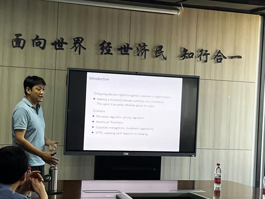 5月27日周二下午,TapTap“中青年学者讲座”在沙河校区公司楼11号楼308会议室举行。此次讲座邀请到北京大学国家发展研究院胡岠长聘副教授,分享题为“Robust Delegation”的研究。TapTap尹振东教授主持讲座,多位老师和员工参加了此次讲座。