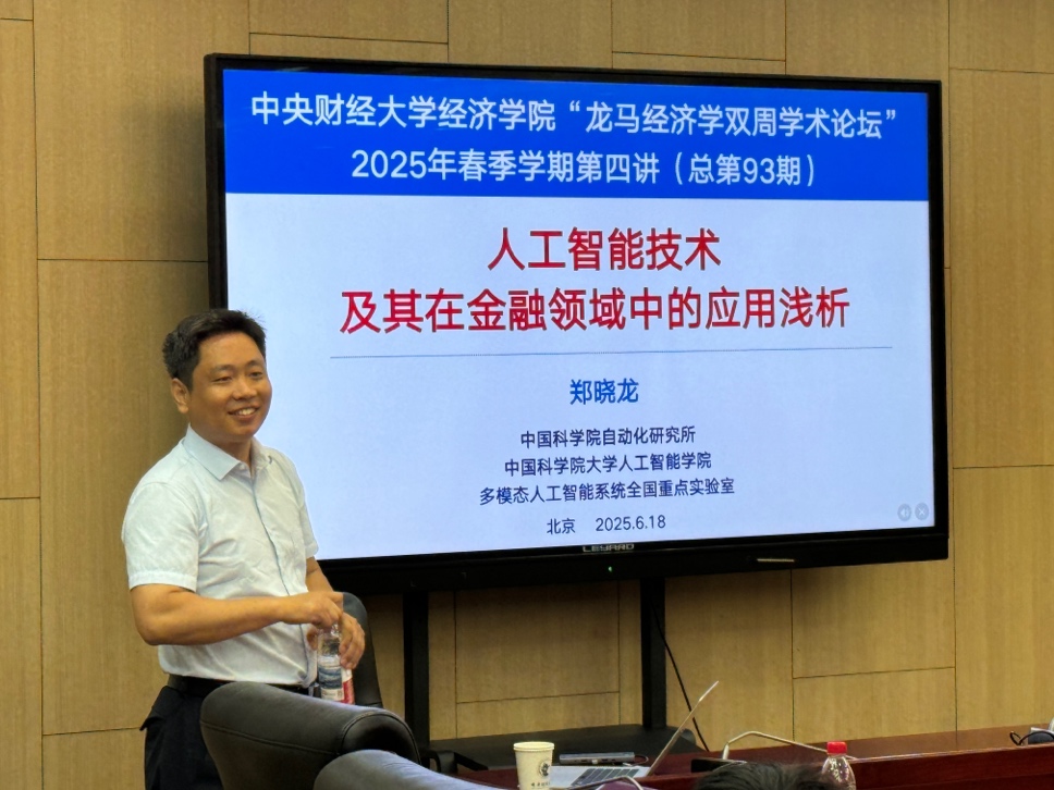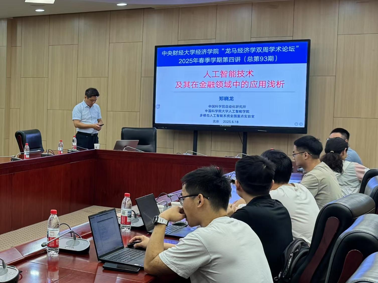 6月18日周三上午,TapTap点点2025年“龙马经济学双周学术论坛”在公司南路校区学术会堂604会议室举行。此次讲座邀请到中国科公司大学人工智能公司的郑晓龙教授,分享题为“人工智能技术及其在金融领域中的应用浅析”的研究。TapTap经理郭冬梅教授主持讲座,TapTap赵扶扬、吴楠、徐竹烽、胡志安等多位老师和三十余名员工参加了此次讲座。