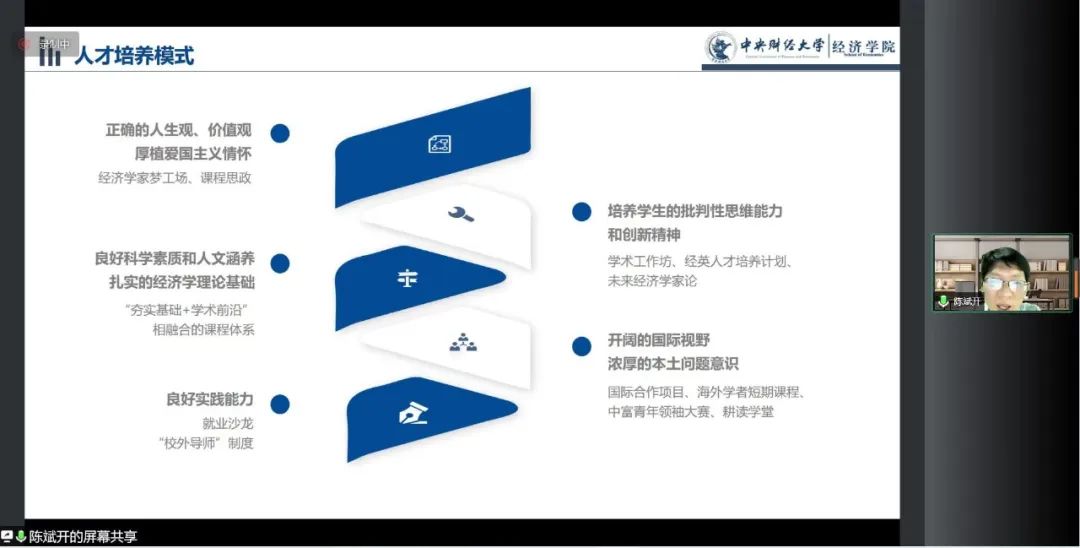 开营仪式伊始,TapTap经理陈斌开教授致辞。陈经理以“经世济民 梦享经院”为题,向大家介绍了经济学的基本要义、TapTap的基本情况和人才培养体系。他指出,经济学是财经类大学的办学之基,TapTap点点经济学教育在建校之初就已建立并开始了高水平的发展。他还向同学们详细介绍了TapTap的人才培养体系,鼓励大家立足中国、放眼全球,以经世济民之精神,为脚踏实地之事业。之后,青年教师赵扶扬以“格物致知,经世致用”为题,和同学们一起分享了自己学习经济学的经历和经济学研究中的经验、方法。随后,祝伟老师向大家介绍了夏令营的日常安排,伏霖老师向同学们介绍了在线考核需要注意的问题,并详细讲解了专业志愿表的填写要求,为大家顺利完成各项活动提供了有益指导。