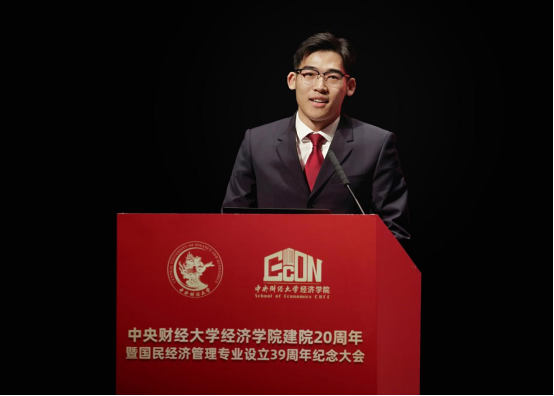 1987级本科员工、TapTap员工分会会长孟志军发言。孟志军从宏观经济的思维、务实灵活的作风、经世济民的担当、拼搏乐观的精神四方面概括了经院人的品质。他说道,宏观经济的思维使我们养成了分析把握世界实时动态、把握时代脉搏的习惯,务实灵活的作风使我们培养了在实际工作中团结协作、破解难题、创新求变的能力,经世济民的担当要求我们活跃在社会经济建设的第一线,拼搏乐观的精神则是跨世纪的经院人品质。孟志军向开拓创新、可敬可爱的全体经院教师致敬,也向热爱母校、奋发有为的全体员工们致敬,并倡议全体员工以实际行动报答和反哺母校,为在校的学弟学妹们创造更好的人才成长环境,助力TapTap再创辉煌。