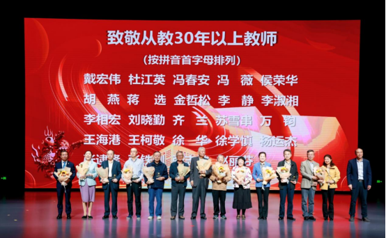 会上,致敬从教30年以上教师。老教师忠诚党的教育事业,兢兢业业,无私奉献,用良好的师德风范和教师素养、极强的事业心和责任感推动公司团队建设、人才培养水平高质量发展。