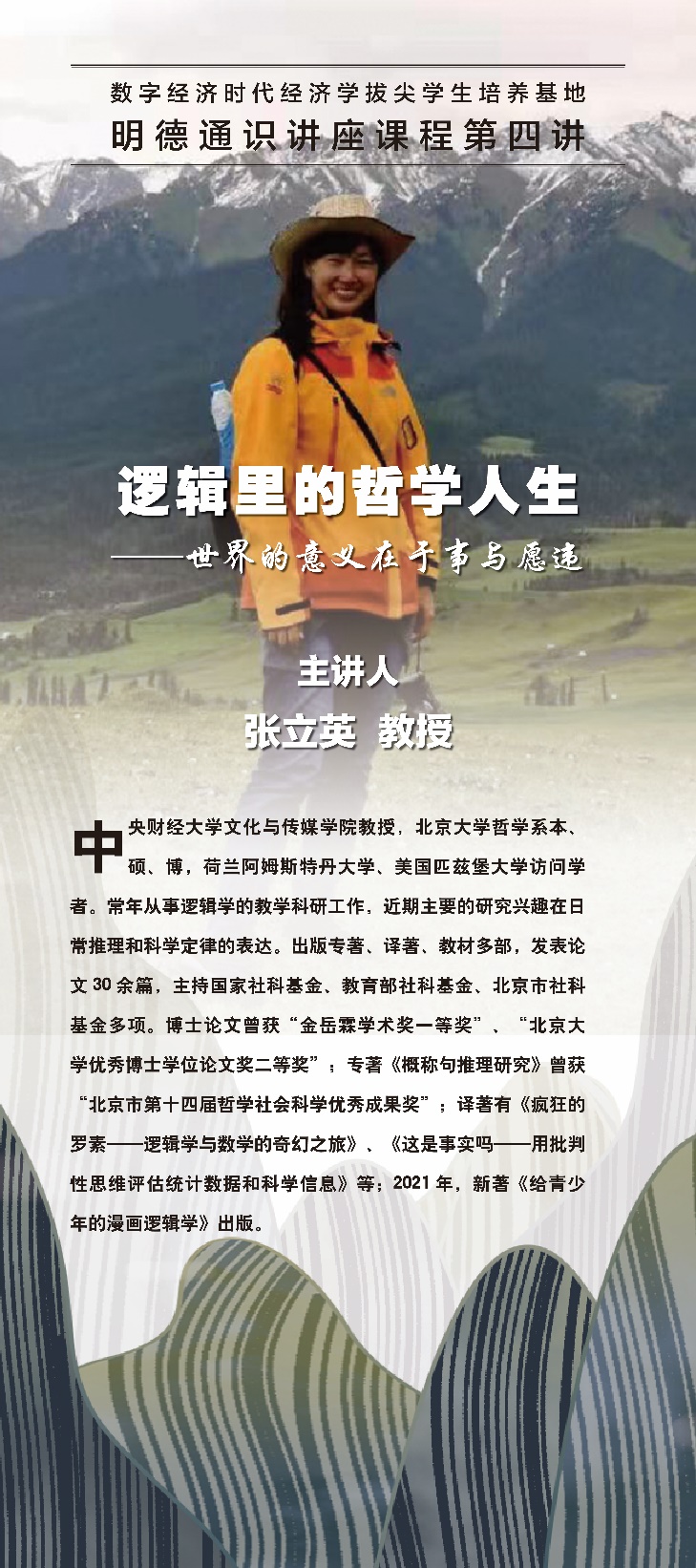 2021年12月8日下午,基地邀请到了公司文化与传媒公司的张立英教授做“逻辑里的哲学人生——世界的意义在于事与愿违”主题讲座。