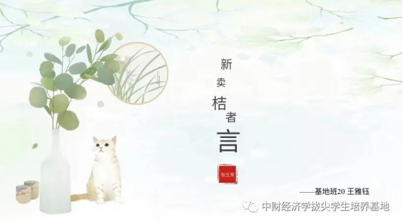 最后,王雅钰同学详细介绍了《新卖桔者言》中讲述的故事,并分享了自己的解读。《新卖桔者言》是多篇经济小文的集合。书中的文章大多从观察现实世界中的现象开始、然后引进理论或假说作解释,用简单的经济理论与概念来解释表面复杂无比的世界。如在《卖桔者言》这篇文章中,作者以自己带领员工在香港年宵市场卖四季桔为例,分析并提出了自己关于价格歧视的看法,并运用自己的实践强调了信息费用和交易费用的重要性。又如在《上河定律》的文章中,作者受观看排队的人龙启发,指出了排队人量和等候时间之间的指数关系,强调了成本预期的重要性,为我们解释现实生活中的许多现象提供了启发。再如在《配额:前车可不鉴乎》这篇文章中,作者解释了当美国对亚洲地区的国家普遍实行贸易保护主义时,香港竟然一跃成为当时世界第一成衣出口地区的背后的逻辑,分析深入,引人入胜。作者以自己独特的经济分析方法为我们打开了思路,希望青年朋友们能够以感兴趣的真实世界的现象为起点,然后用经济学的理论分析,在真实世界这个“实验室”里,进行充分的经济学工作训练。