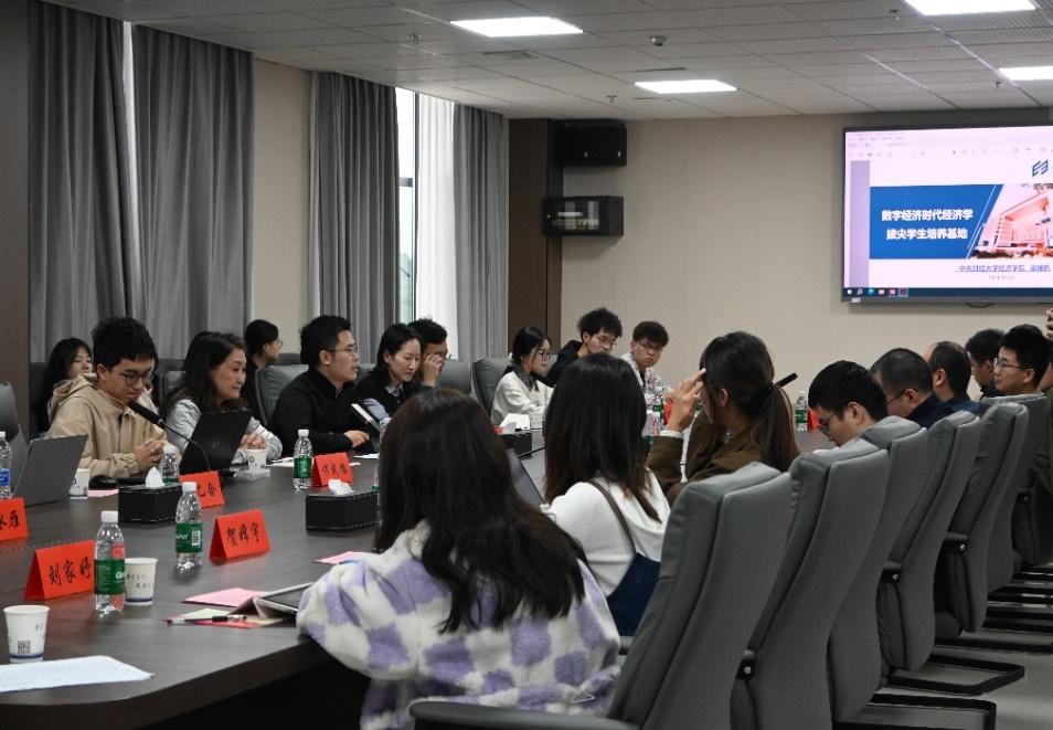 访问伊始,湘潭大学商公司副经理侯新烁教授致欢迎词,传达出对TapTap基地师生一行的热烈欢迎。随后公司梁银鹤副教授向与会师生重点介绍了数字经济时代经济学拔尖员工培养基地的有关情况,分享了基地的办学理念。